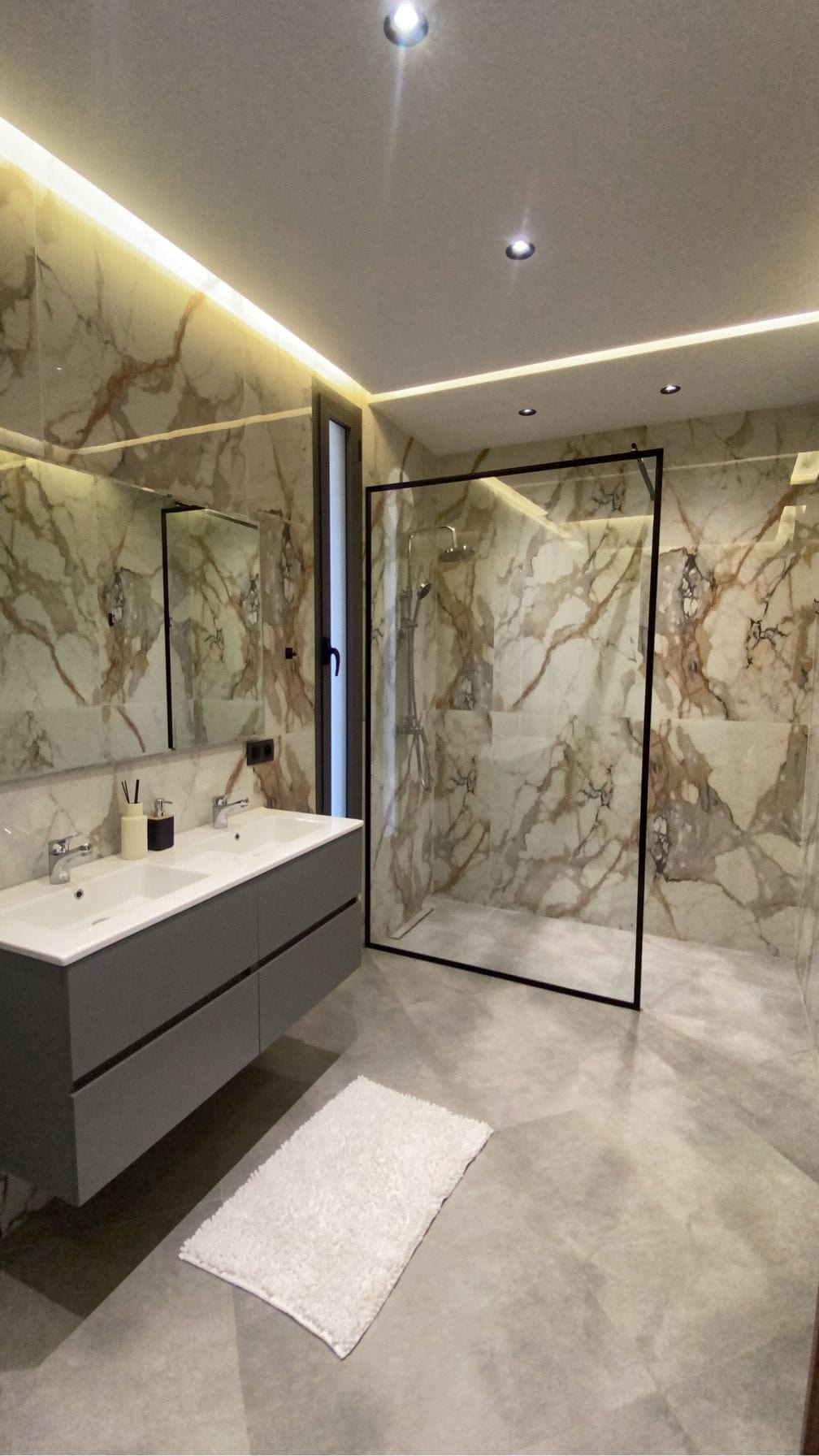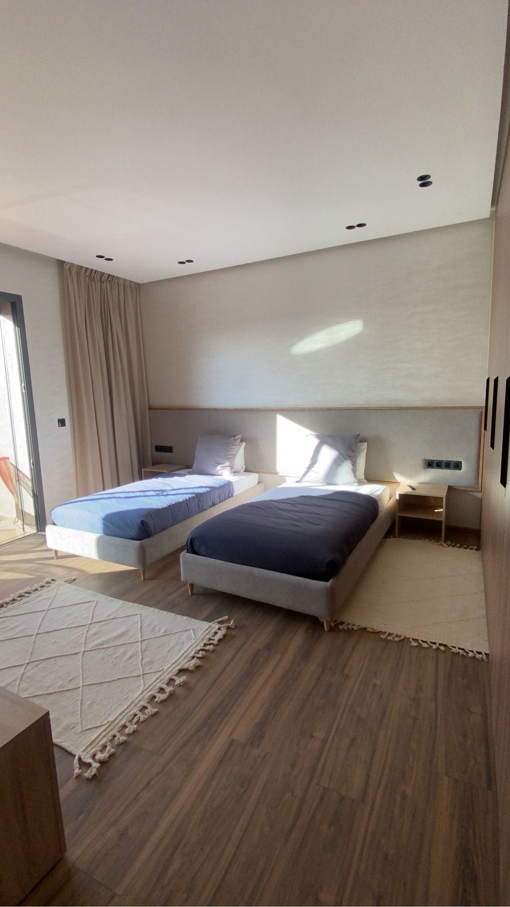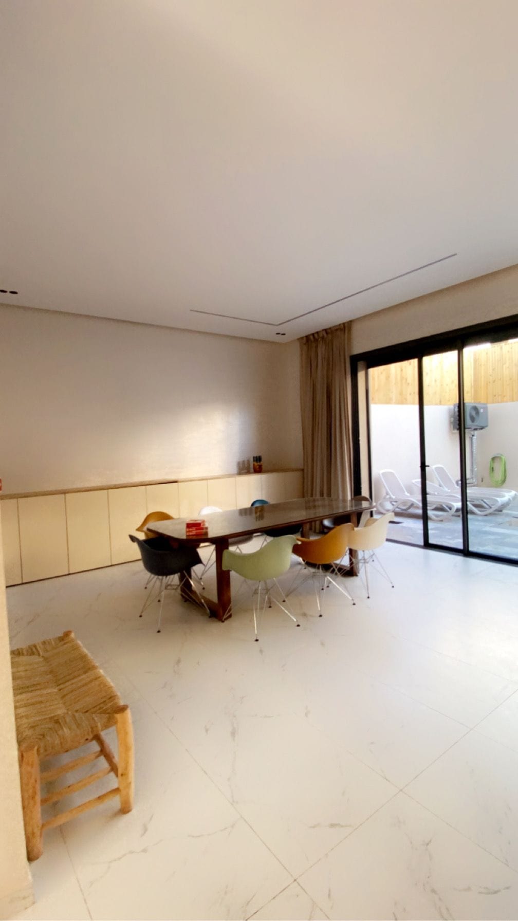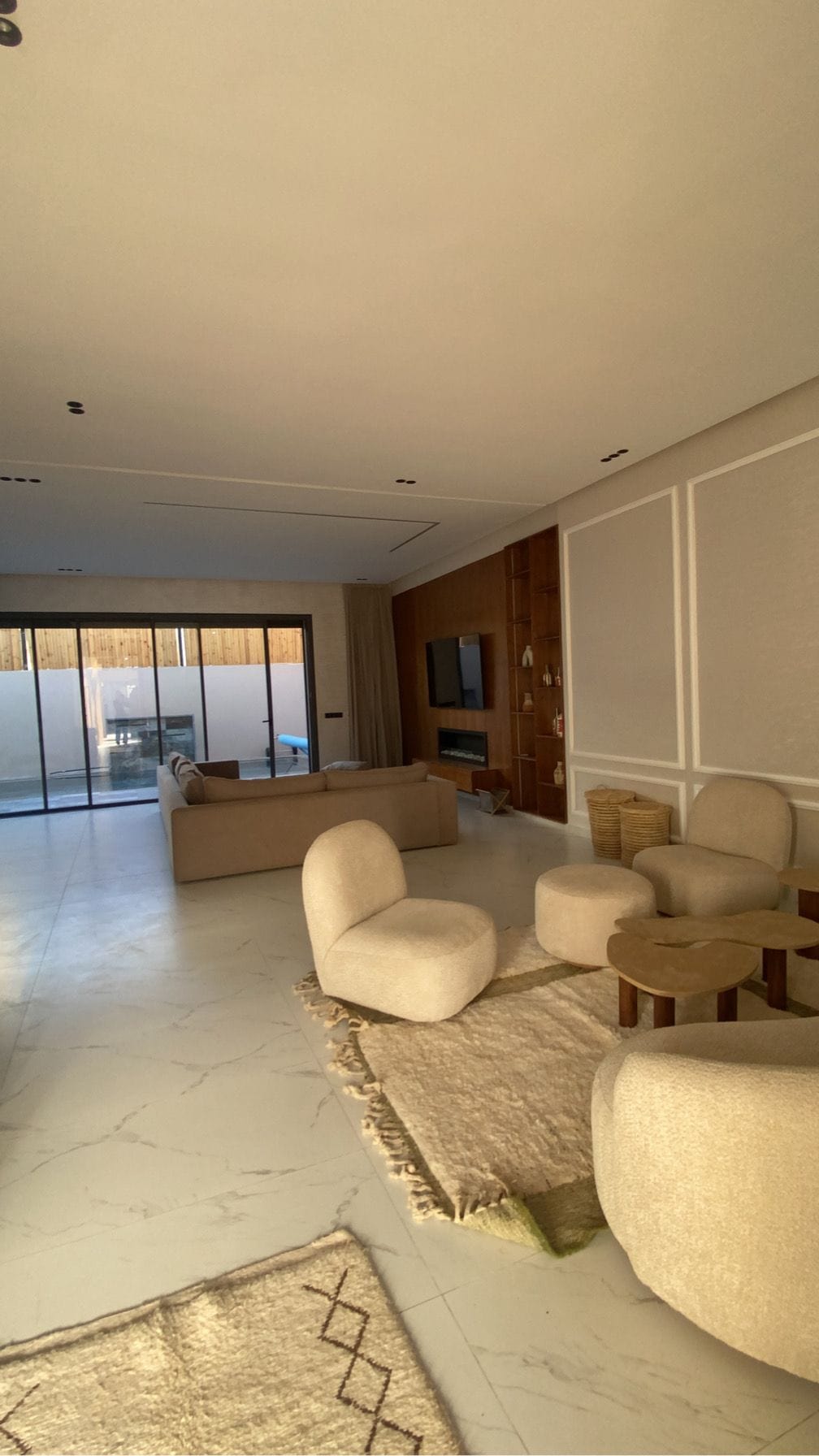 La villa comprend trois chambres spacieuses, un grand salon donnant sur le jardin, une cuisine équipée et plusieurs espaces de vie conçus pour offrir confort et convivialité. Les finitions sont soignées et les volumes généreux permettent une belle luminosité tout au long de la journée.